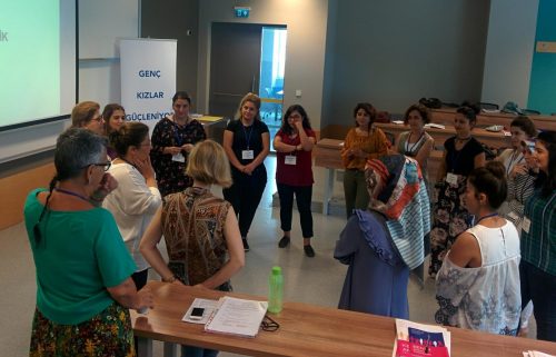 AÇEV’in uzman eğitmenleri Meltem Cantürk, Nursel Şafak, Ayşe Özdemir ve Özyeğin Üniversitesi Psikoloji Bölümü Başkanı Doç. Dr. Asiye Kumru’nun eğitmenliğinde yürütülen ergenlik dönemi, etkili iletişim becerileri, özbakım ve ortak yaşam, toplumsal cinsiyet eşitliği, üreme sağlığı ve kariyer planlama gibi başlıkların işlendiği programda öğretmenler yurtlarda uygulamalara başlamadan önce eğitim kapsamında uygulamalarını gerçekleştirme fırsatı yakalamışlardır.